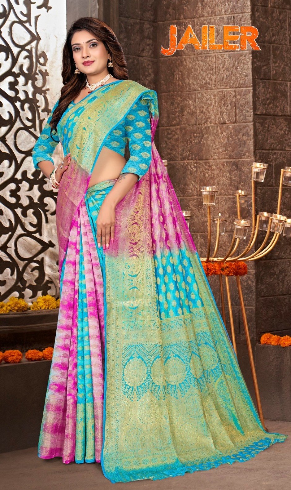 YB-JAILER is a premium Silk Saree suitable for wholesale resale. Each saree is priced at ₹445 and supplied in a set of 8 sarees. Ideal for festive and daily retail demand.