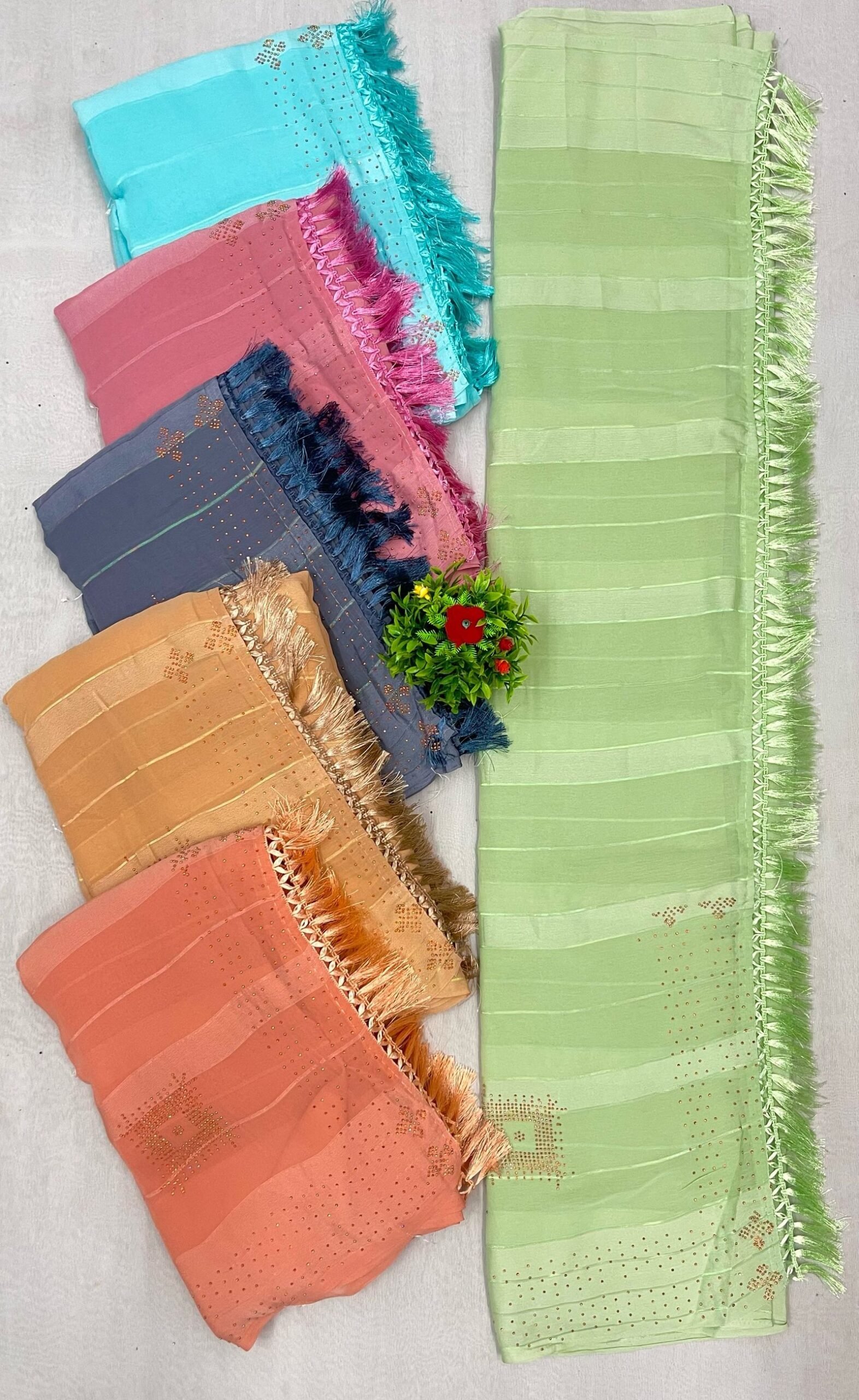YB-ONLINE 4_(Georgette). Georgette Saree with finalized set quantity. Each saree priced at ₹240. Set of 6 sarees. Total price ₹1440.